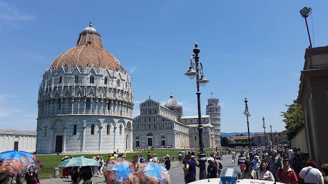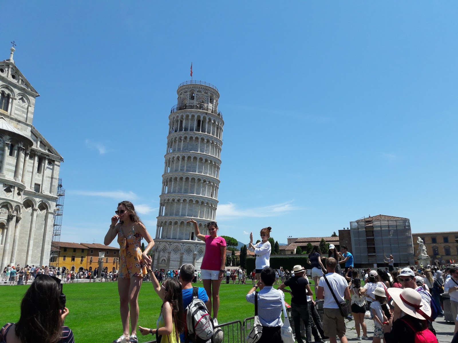 Der schiefe Turm von Pisa - da war er und er ist tatsächlich schief. Und die Menschen machen die lustigsten Figugchen, damit sie ein besonderes Foto erhalten. Entweder lehnten sie sich gegen den Turm, oder stützen ihn mit den Füßen oder mit den Händen.. Es war einfach lustig anzusehen.