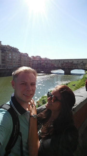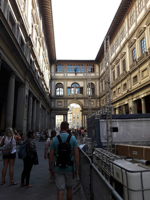 Nachdem wir aber erfahren hatten, dass wir mit Sicherheit über 400 Stufen hoch müssten und dafür auch noch 10.00 EUR zahlen sollten, drehten wir einfach um und gingen die Uffizien, eines der berühmtesten Kunstmuseen der Welt, außen entlang zum Fluss Arno