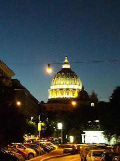 Nun war die Überlegung, ob wir am Trevi- Brunnen einfach sitzen bleiben und warten, bis es dunkel wird (1,5h) oder laufen wir zum Petersplatz und schauen uns diesen bei Nacht an?