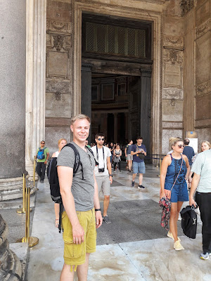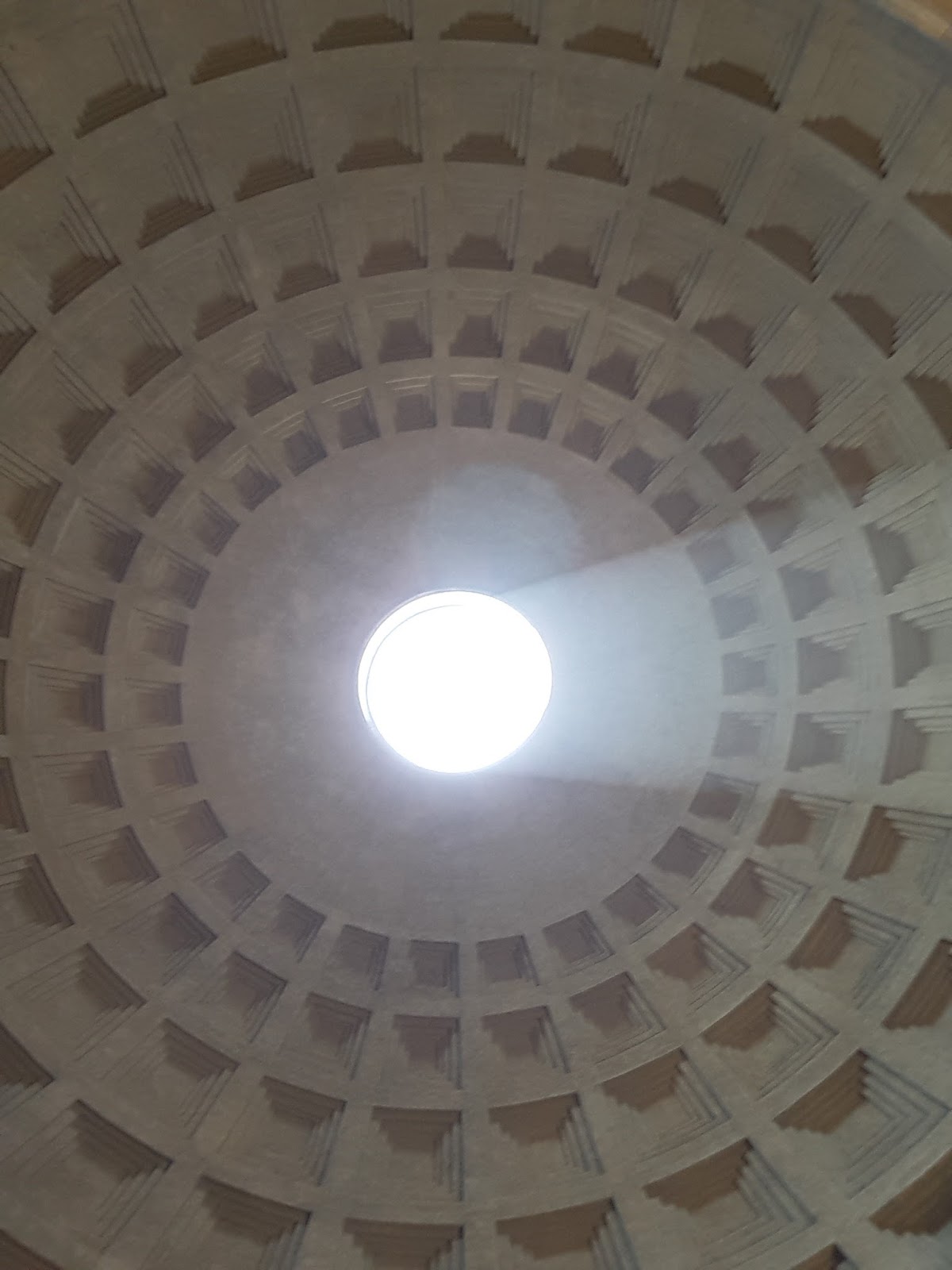 16 gigantische Säulen bilden den Eingang zu dieser überkuppelten Rotunde, die mit ihren harmonischen Proportionen, der raffinierten Statik und dem strengen Giebeldreieck zu den Meisterwerken der Architektur zählt. Der Ursprungsbau ist bereits 27. VOR Chr. erstellt wurden. Noch heute ist es das Bauwerk mit der größten Kuppel in Rom (Durchmesser 43,3m!) Wenn man auf dem Platz vorm Pantheon steht und einfach nur erstaunt, erschlagen ist, fragt man sich: Bei mir scheitert es schon am dreistufigen Kartenhaus, wie zum Teufel konnten die das vor 2000 Jahren fertig bringen?