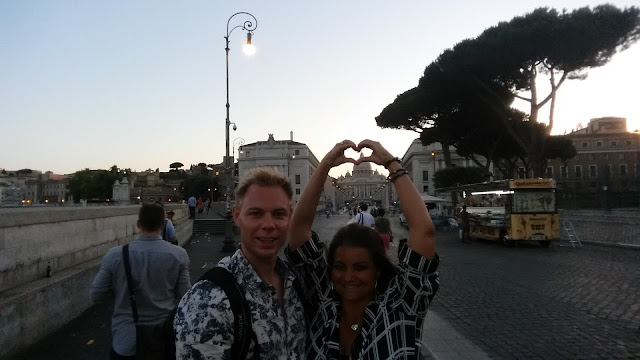 So liefen wir auch hier die über 3km zum Petersplatz und bestaunten noch einmal in der untergehenden Sonne die Engelsburg mit der Engelsbrücke über dem Tiber.