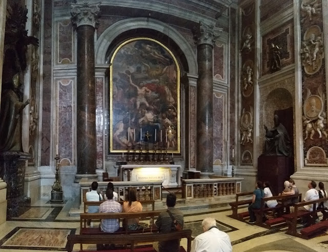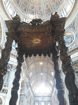 Ziegelbauwerk der Welt. Darunter befindet sich der Papstaltar, der von einem bronzenen Baldachin auf gedrehten Säulen beschirmt ist das größte Bronzekunstwerk der Welt. Unter dem Altar befindet