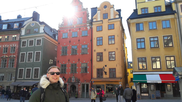 Auf der Insel Gamla stan gingen wir zu dem einstigen Marktplatz, auf dem wir schon zu Beginn unserer Reise waren und wollten jetzt ein Foto bei Sonnenschein von dem berühmten farbigen Häusern machen. Unser Weg führte uns weiter zur deutschen Kirche. Leider war die Kirche bereits geschlossen, da Vorkehrungen für die Osterzeremonie getroffen wurden.