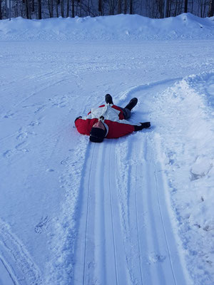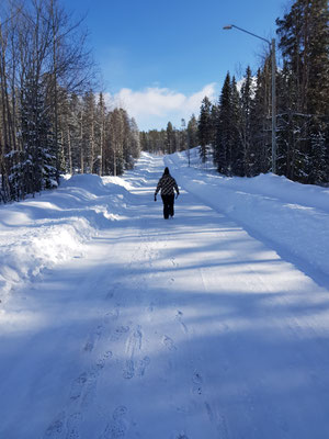 Also gingen wir zeitig ins Bett und standen wegen der Zeitumstellung auch ziemlich früh auf. Das Frühstück war vollkommen in Ordnung – und langsam kam die Sonne raus. Nachdem wir noch einmal recherchierten, was wir hier machen könnten und immer nur auf Aktivitäten im Großraum von Västerbotten gestoßen sind, entschieden wir uns, einfach ein wenig zu wandern. Skiklamotten an und los ging es.