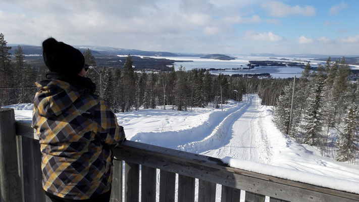 Die Aussichtsplattform eignet sich auch hervorragend, um Polarlichter zu sehen. Es ist heute unsere letzte Möglichkeit, noch einmal die Nordlichter sehen zu können. Wir werden den Himmel beobachten und ggf. mit dem Auto auf den Berg fahren.