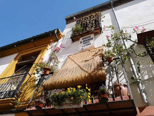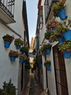 Die Altstadt um die Mezquita ist wunderschön und sauber. Enge Gassen, kleine Plätze, beleuchtete Monumente - all das findet man in Córdoba. Wir gingen zur berühmten Blumenstraße - mit viel Phantasie ist sie hübsch anzusehen, ansonsten enttäuschend, denn im August sind die Blumen, die sonst an den Wänden hängen und ihre Blütenpracht im Frühjahr zeigen, fast verblüht. Es handelt sich auch nur um eine circa 20m lange, schmale Gasse. Passend zur Blütezeit findet auch das jährliche Festival der Patios statt.