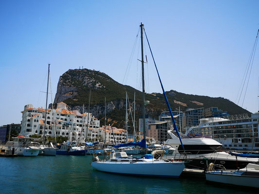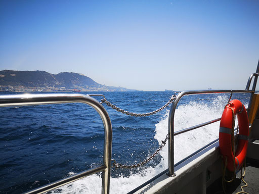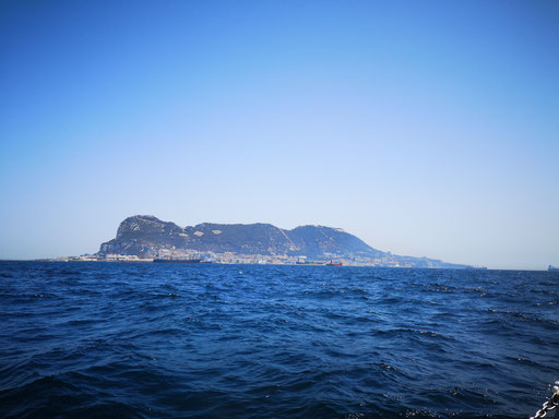 Am nächsten Tag schliefen wir sehr lang. Nach einem kleinen, aber ausreichenden Frühstück starteten wir nach Gibraltar. Wir hatten eine Delphintour gebucht und wollten mit der Seilbahn auf den Affenberg. Am Abend zuvor hatten wir schon herausgefunden, dass das Parken für den ganzen Tag 15.00 EUR kostete. Tipp: In La Linea gibt es für Taxen einen einheitlichen Stadttarif, welcher nicht einmal 4.00 EUR beträgt. Wir ließen uns vom Hotel ein Taxi rufen und fuhren für 3.85 EUR bis zur Grenze (es ist korrekt, dass es sich hierbei nur um gute 3 Kilometer handelte, der Taxifahrer war sehr freundlich, sprach erstaunlicherweise aber kein Englisch und gab uns mit Händen und Füßen einige Informationen). Es ist wirklich ratsam, zu Fuß nach Gibraltar zu gehen, die Autoschlange der Ein- sowie Ausreisenden ist lang und man müsste sehr viel Geduld mitbringen. Pünktlich 14:00Uhr waren wir dann am Treffpunkt im Hafen zur Delphintour.