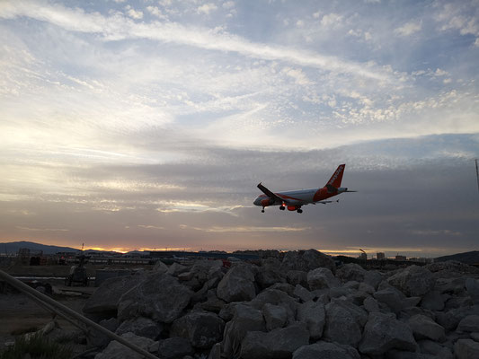 Wir waren ganz schön kaputt, wollten aber unbedingt noch mehr erleben. Wer will denn schon 19.00 Uhr auf dem Zimmer sein. So beschlossen wir von Tarifa mit dem Auto nach Gibraltar zu fahren und das Land einfach mal spontan zu „umrunden“. Gesagt getan. Bei der Einfahrt hatten wir keine Probleme (bitte beachten: Wer mit dem Mietwagen unterwegs ist reist in ein anderes Land ein – ggf. haftet hier für Schäden die Versicherung nicht). Interessant war, wie sauber und modern Gibraltar ist – da, wo die Touristen hinkommen. Sobald wir in den „hinteren Teil“ kamen, gab es viele unschöne Stellen. Auch wenn es sich vielleicht nicht so spektakulär anhört, es hat uns viel Spaß gemacht. Am Ende hatten wir sogar noch einmal Glück und sahen ein Flugzeug bei Sonnenuntergang landen. Das war ein perfekter Abschluss.