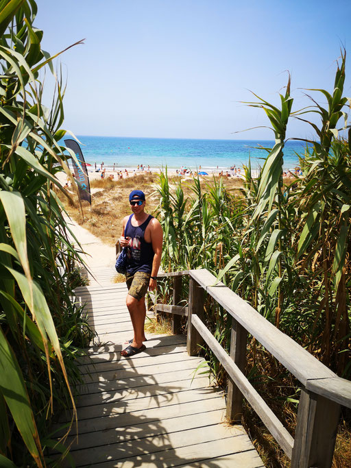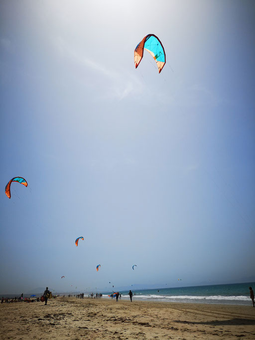 Mit Tarifa verbinde ich Atlantik, Mittelmeer, Wind, (Kite)Surfer und einen endlos langen, breiten Strand sowie einen Blick nach Afrika. Und genauso war es. Tarifa befindet sich direkt am Meer, an der Straße von Gibraltar, wo der Atlantik und das Mittelmeer aufeinandertreffen. Aus diesem Grund kannst du hier mit ein bisschen Glück auch auf verschiedene Delphinarten und sogar Wale, wie den riesigen Pottwal, antreffen oder sogar Orkas!