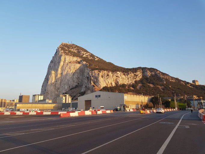 Von Ronda ging es nun am Montag, 05.08.19, nach Gibraltar. Gute zwei Stunden Fahrt durch gebirgige Landschaften lagen vor uns. Wir fuhren schmale Serpentinen hoch und runter, neben uns der steile Abhang, sehr enge Straßen, viele Kurven – und dennoch fuhren wir wohl ein paar Einheimischen zu langsam. Manchmal stockte mir der Atem – es waren schon sehr kritische Situationen.
