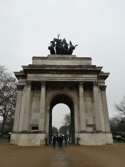 Den Rest des Tages nutzen wir, um London noch auf eigene Faust zu erkunden. Dank der Oyster Card konnten wir ja jedes Verkehrsmittel benutzen, setzten uns in einen roten Bus und ließen uns ein wenig rumfahren. So besuchten wir noch den Piccadilly Circus (Die wohl meist-fotografierteste Reklametafel an einem Eckhaus, tausende Menschen und Fahrzeuge), wanderten zum Wellington Arch (Triumphbogen am Verkehrsknotenpunkt Hyde Park Corner), vorbei am königliche Artillerie-Denkmal (wurde im Jahre 1925 zum Gedenken an die 49076 Gefallenen der königlichen Artillerie im I. Weltkrieg gestaltet.) Wir liefen über den St. James Park – beobachteten die frechen Eichhörnchen und die stolzen Pelikane - hin zum Buckingham Palace.