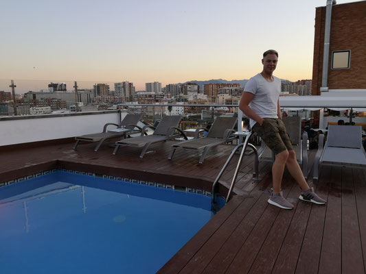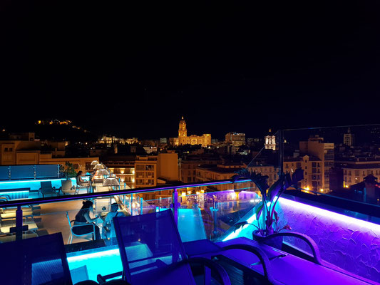 Nichtsdestotrotz blieben wir im Zimmer 415, machten uns etwas frisch und gingen auf die Dachterrasse. Mittlerweile war es schon halb neun und wir hatten einen tollen Sonnenuntergang und einen perfeken ersten Blick auf Malaga. Vom Hunger getrieben kam der Nahrungsbeauftragte, Phil, seiner Pflicht nach und fand, abseits des Touristenstromes und fast direkt um die Ecke einen urigen Spanier. Er konnte kein Englisch, wir haben ihn kaum verstanden und am Ende hatten wir verdammt leckere Tapas und Phil sein Bier - aus einem eisgekühlten Glas. Ich kann sagen, alle ware glücklich. Mit diesem Gefühl fielen wir ins Bett und haben erst einmal ausgeschlafen.