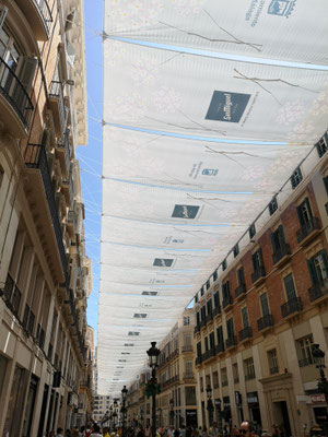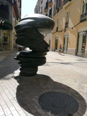 Unsere Tour führte uns zur teuersten Straß in Malaga - Geschäfte neben Geschäften, 300 Euro der Quadratmeter Miete. Versteckt zwischen Geschäften steht eine undefinierbare Statur... Erst beim genauen Hinsehen erkennt man, dass es sich um zwei Gesichter handelt.