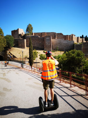 Steil bergauf fuhren wir auf den Festungshügel Gibralfaro. Was für eine tolle Aussicht. Wir hatten einen super tollen Blick auf die ganze Stadt und dank der Segways mussten wir auch nicht die Straße fahren, auf der viele Autos unterwegs waren, sondern hatten einen super schönen Weg durch die Natur. Das Castillo an sich haben wir auf der Tour nicht besucht, dafür reichten die 2 Stunden nicht aus. Es handelt sich hierbei um die zweite maurische Festung Malagas. Die Burg ist aus dem 14. Jhd. und befindet sich 130 Meter über den Meeresspiegel. Wer hochfährt muss bekanntlich auch wieder runter. Bergabwärts macht auf dem Segway schon Spaß.