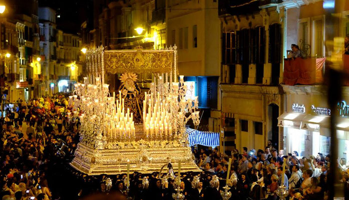 Jedes Jahr zu Ostern füllen sich die Straßen Málagas mit Touristen und Einheimischen, mit Fanfaren-Musik und Weihrauchduft. Die Osterwoche ist eine Woche voller Prozessionen und Feiern. Die Osterwoche hat vor allem in Andalsuien byw. in Sevilla und Malaga besondere Tradition: Die Feier der Semana Santa stammt aus der Zeit der Katholischen Könige, und ist auch heutzutage noch sehr beliebt bei Spaniern und Touristen. Während dieser Feier werden die berühmten Throne (die „tronos“) von einer Gruppe so genannter “costaleros” aus den verschiedenen Kirchen durch die Straßen von Málaga getragen. Diese costaleros sind Mitglieder einer der vielen Bruderschaften, die auf Spanisch „cofradía“ genannt werden. Komplettiert wird der Zug von den „nazarenos“, den Büßern, die vor und hinter dem Thron herlaufen, um Buße zu tun. Damit sie anonym bleiben, tragen sie lange Gewänder mit Gesichtsmaske und spitzen Hüten, auf Spanisch „capirotes“ genannt, die manch einen an die Gewänder des Ku Klux Klan erinnert. Doch damit haben sie ganz sicher nichts zu tun. Es handelt sich um eine Jahrhunderte alte Tradition, mit der der Geschichte Jesu gedacht wird. ( https://onspainschool.com/de/tronos-nazarenos-und-cofradias-7-tage-semana-santa-in-malaga/)