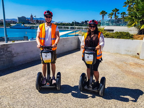 Julia, unsere Guide, wartete schon auf uns. Wir waren allein auf der Tour und konnten selbst entscheiden, wo wir hin möchten. Die Entscheidung traf Phil ganz schnell - zum Strand und auf den Berg. Puh da wir bereits etwas Erfahrung mit Segways haben, starteten wir auch umgehend Richtung Malagueta.